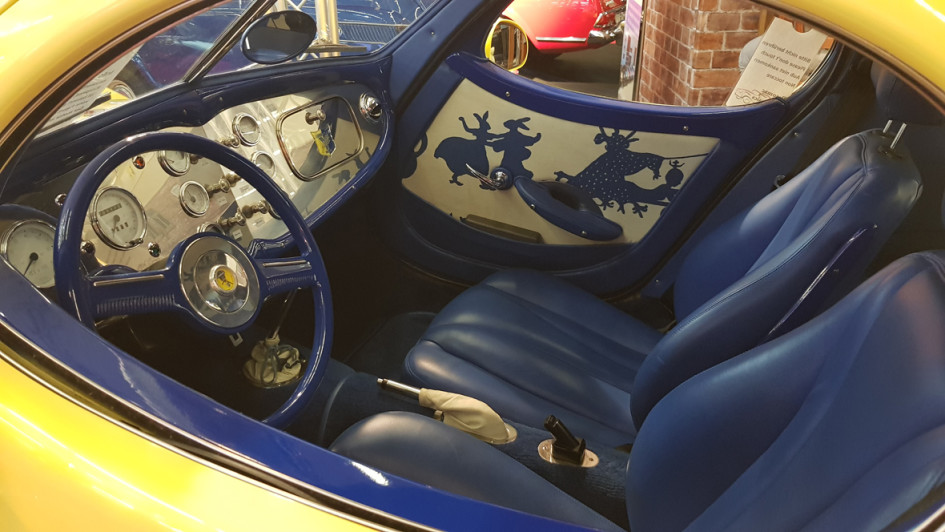 von 11: Genauso extrovertiert wie das Außen- wirkt auch das Innendesign. Das blaue Leder ist das eine, die "spezielle" Innenverkleidung der Tür das andere. Nichtsdestotrotz ist dieser Rinspeed eine Besonderheit - der Eigentümer ruft 125.000 Euro auf.