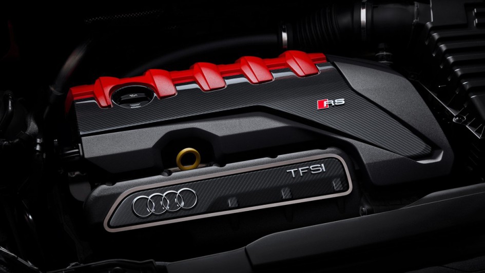 von 13: Kernelement des RS Q3 ist natürlich der Fünfzylinder-Turbo mit 2,5 Liter Hubraum. Er leiste 294 kW / 400 PS und schickt ein Drehmoment von bis zu 480 Newtonmeter ins Siebengang-Doppelkupplungsgetriebe.