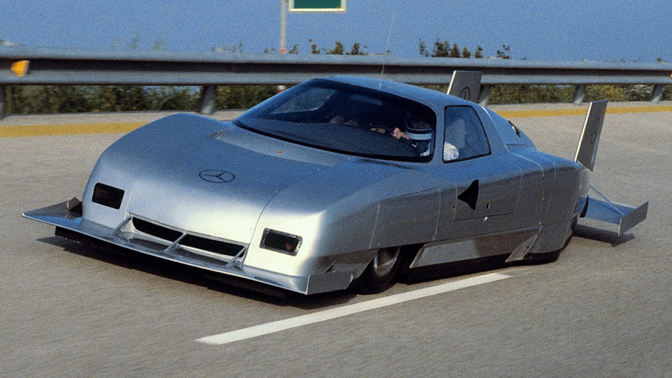 von 11: Der dieselgetriebene C 111 erreichte 1978 in Nardò die 320 km/h-Marke und erzielte dort während einer zwölfstündigen Fahrt eine Durchschnittsgeschwindigkeit von 316 km/h.