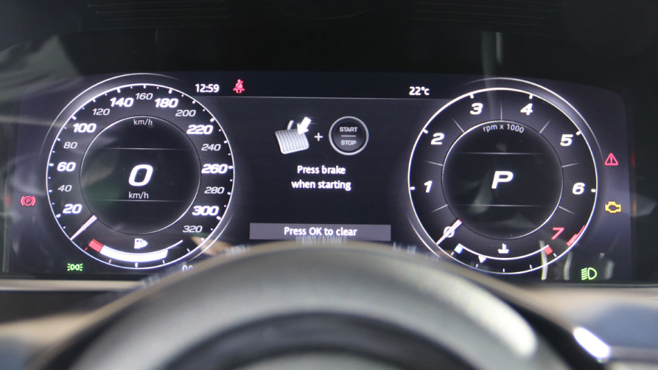 von 10: Noch einmal nachgelegt hat Jaguar im Innenraum: Neu ist das digitale Kombi-Instrument, und auch das alte Infotainmentsystem wurde ausgemustert.