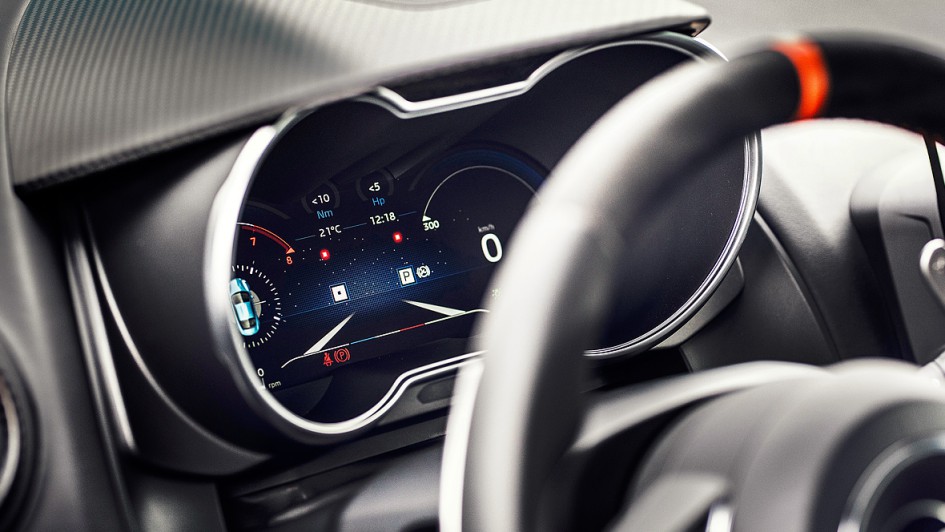von 7: Zur Alltagstauglichkeit der Alpine A110 gehören serienmäßige Parksensoren, und die Infotainment-Fraktion wird mit großem Touchscreen in der Mittelkonsole sowie einem Instrumentarium belohnt, das aus purer Anzeigefläche besteht.