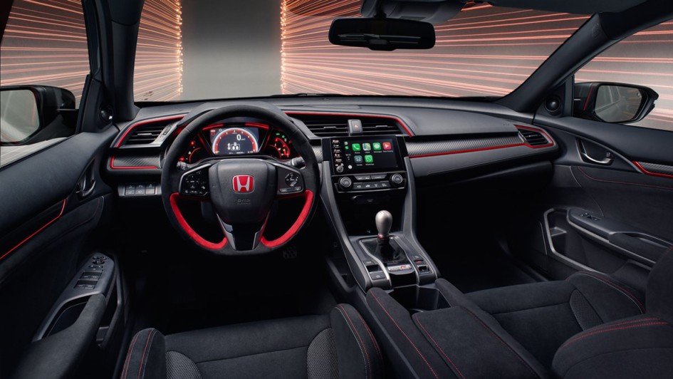 von 8: Mit einem Heckspoiler statt -flügel, 19-Zoll-Leichtmetallfelgen sowie schwarzem Interieur steht der Civic Type R Sport Line für einen dezenteren Look. Die Preise starten bei 41.490 Euro.