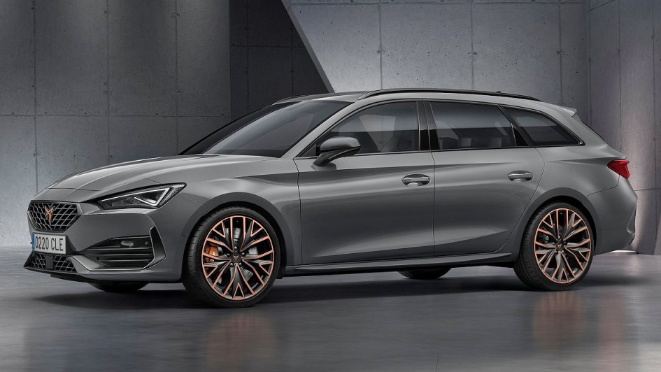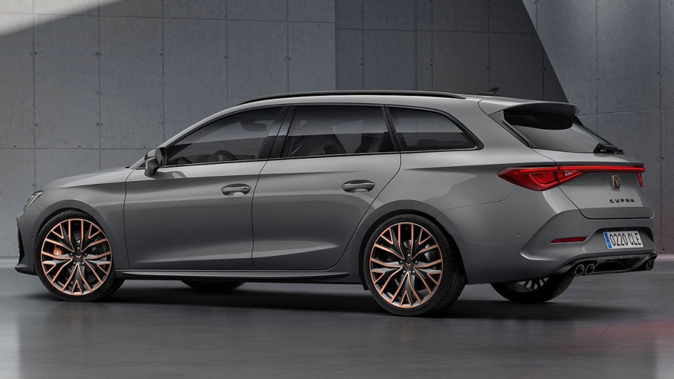 von 12: Der Cupra Leon bekommt die üblichen Sportinsignien: üppige Lufteinlässe, große 19-Zoll-Räder, mächtige Seitenschweller und markante Endrohre.
