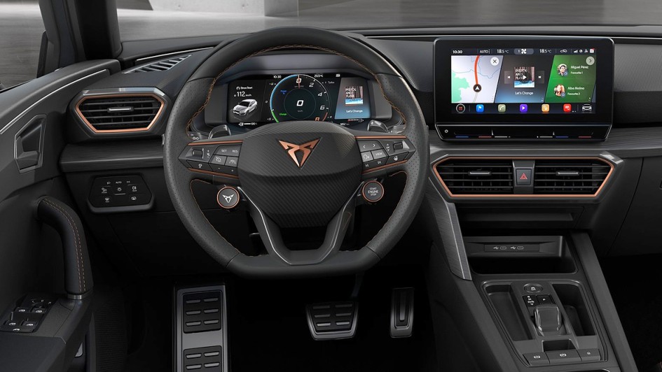 von 12: Cupra beginnt auch mit der Elektrifizierung und bietet einen Plug-in-Hybrid an: Ein 1,5-Liter-Turbo-Otto vereint sich mit einem Elektromotor zu einer ebenfalls 180 kW / 245 PS starken Einheit.