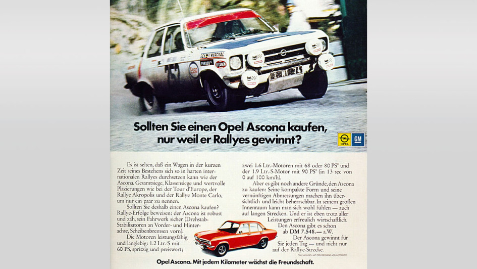von 12: Opel hat den Ascona ab 1970 als viertürige Stufenhecklimousine, den dreitürigen Kombi Voyage und als zweitürige Stufenhecklimousine angeboten.
