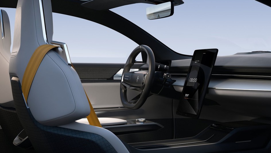 von 9: Konkreter dürfte die neue Infotainment-Technik sein, die Polestar an Bord der Studie vorstellt. Das Interface auf Android-Basis setzt für die Bedienung unter anderem auf "Eye Tracking" - das Verfolgen der Augenbewegung.