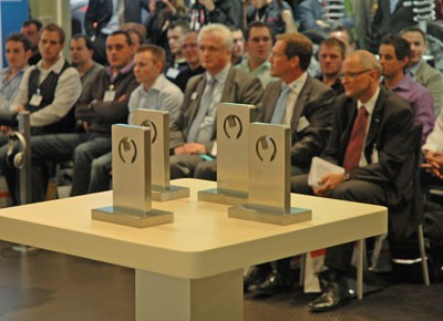 von 8: Die Siegerehrung in Halle 3.0 der Automechanika 2010 fand auf dem Messestand von ZF Services statt. Die Gewinner ließen sich von rund 100 Anwesenden feiern.