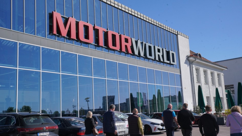 von 10: Die Referenten beim asp-Werkstattclub in der Motorworld (von links hintere Reihe): Marcus Kaiser (K & K Rechtsanwälte), Carsten Komann (Bosch), Volker Strycek (ehemaliger Opel-Sportchef und Rennsportlegende), Dietmar Winkler (asp); vorne v.l.: Dirk Leveringhaus und Ralph Sander (beide TÜV SÜD)