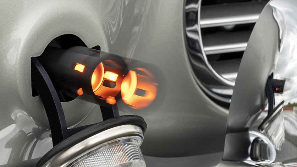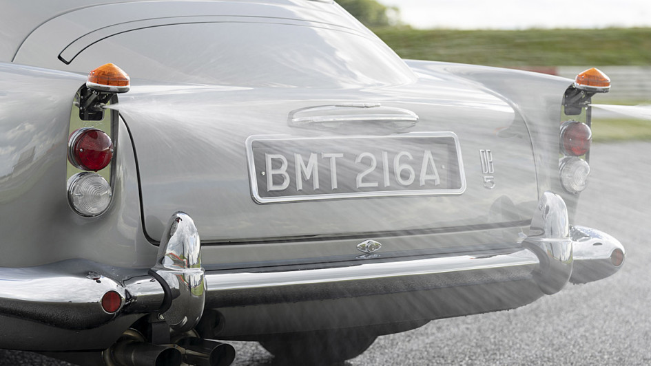 von 14: Theoretisch wäre auch Öl möglich, allerdings wird die Sprühanlage des DB5 in diesem Fall umweltfreundliches Wasser an die Verfolger austeilen.