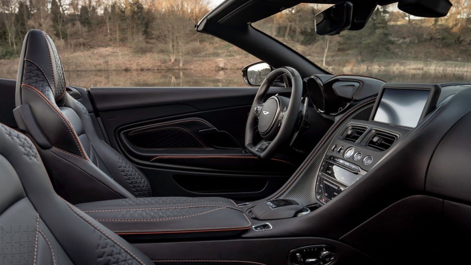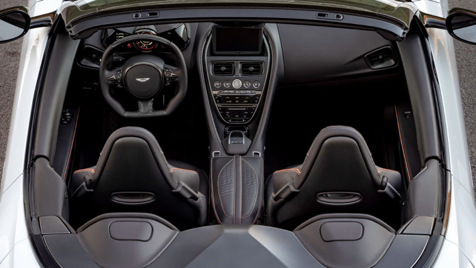 von 8: Das sportliche Arsenal des offenen DBS Superleggera umfasst ein Adaptiv-Fahrwerk, 21-Zoll-Räder und eine Carbon-Keramik-Bremsanlage, die vorne 410er- und hinten 360er-Scheiben bietet.