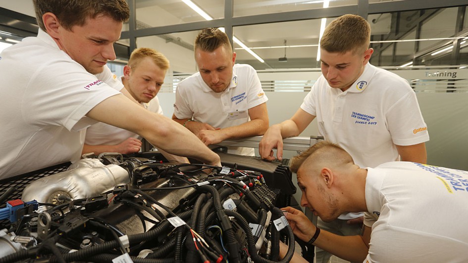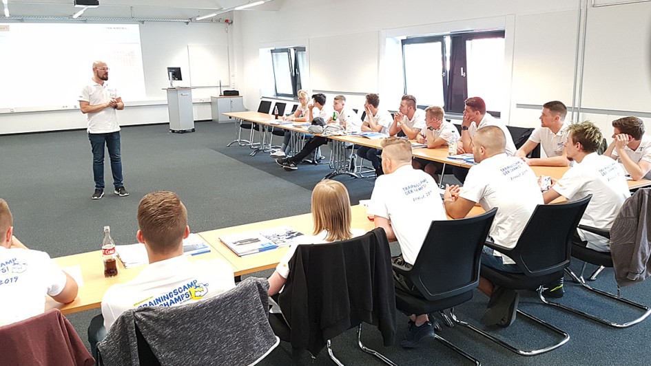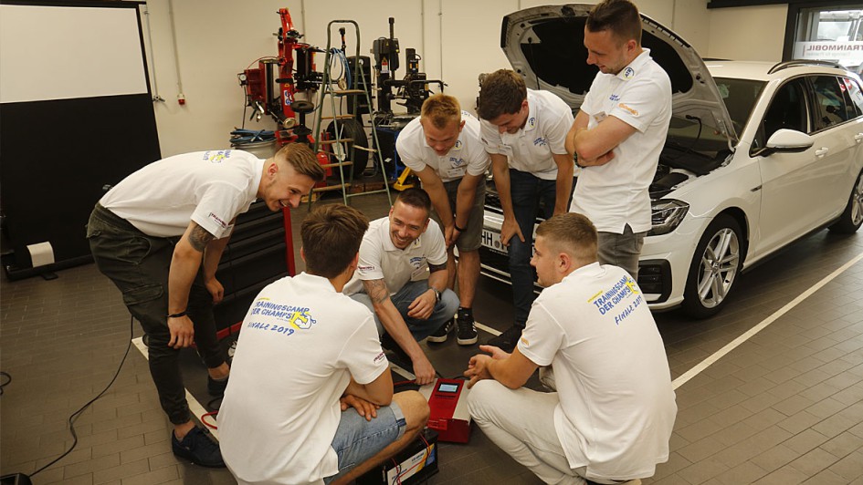 von 11: Vor der Prüfung steigt die Nervosität: Einstimmung der Teilnehmer auf die Aufgaben durch Fabrice Baron, Leiter Technische Trainings bei Trainmobil .