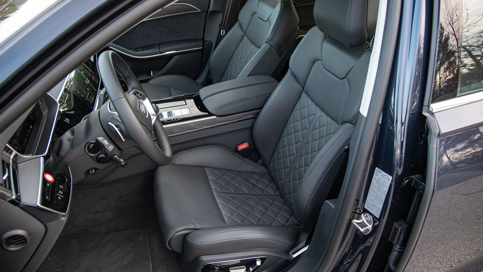von 10: Die Vordersitze lassen sich vielfach verstellen und gehören wohl zum Besten, was die Branche bietet. Optionales Sportgestühl (im Foto zu sehen) passt nicht in den A8 50 TDI Quattro.