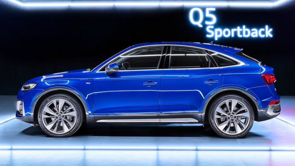von 10: Audi stellt dem Mittelklasse-SUV Q5 eine Coupé-Variante zur Seite. Anders als bei dem größeren Geschwisterpärchen Q7/Q8 trägt die neue Karosserievariante keine eigene Nummer, sondern firmiert als Q5 Sportback.