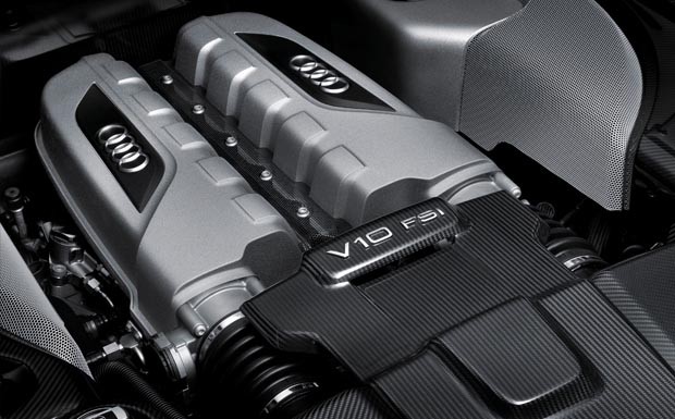 von 10: Da 85 Prozent der Kunden sich für den 2009 ins Programm genommenen Zehnzylinder-Benziner entscheiden, stellt Audi dem V10-Motor (385 kW / 525 PS) eine leistungsgesteigerte Version mit dem Namen R8 V10 Plus zur Seite.