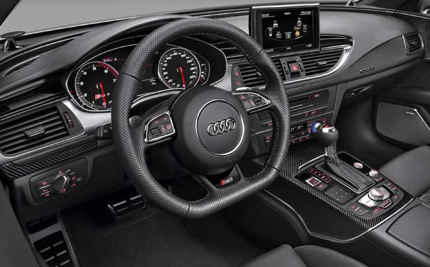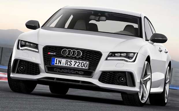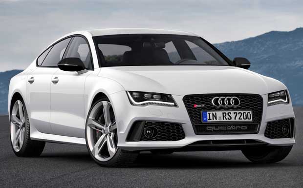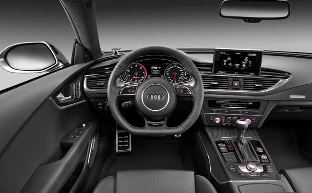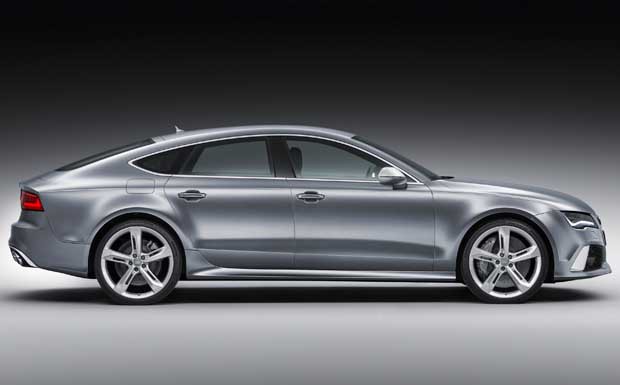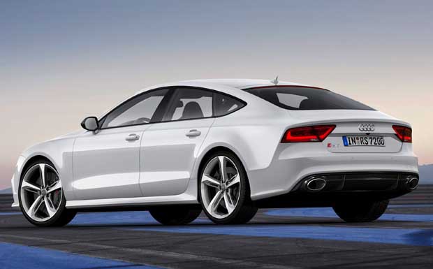 von 9: Optisch macht der RS7 Sportback unter anderem durch Anbauteile in mattem Aluminium, einen ausfahrbaren Heckspoiler, einen Diffusor und die elliptischen Endrohrblenden der Abgasanlage auf sich aufmerksam.
