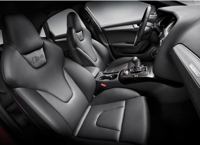 von 10: Im Interieur haben die Sportsitze elektrische Lordosenstützen und ausziehbare Oberschenkelauflagen, im Kombiinstrument liegen graue Zifferblätter mit weißen Zeigern. Sie tragen ebenso S4-Embleme wie das Multifunktions-Sport-Lederlenkrad und der Schlüssel.