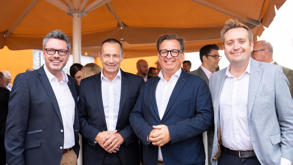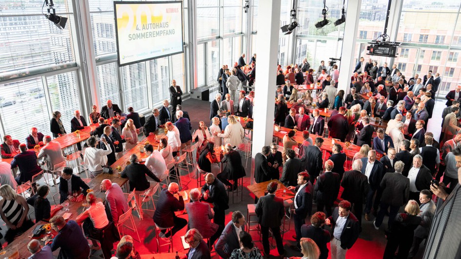 von 23: Die Sponsoren des AUTOHAUS Sommerempfangs 2024 (v.l.n.r.): Philipp Kroschke (Kroschke), Roman Heinrich (Creditplus), Florian Baur (Mobile.de), Claus Schlicker, Sascha Schüren (beide CarGarantie) und Horst Neubacher (RAW-Partner)