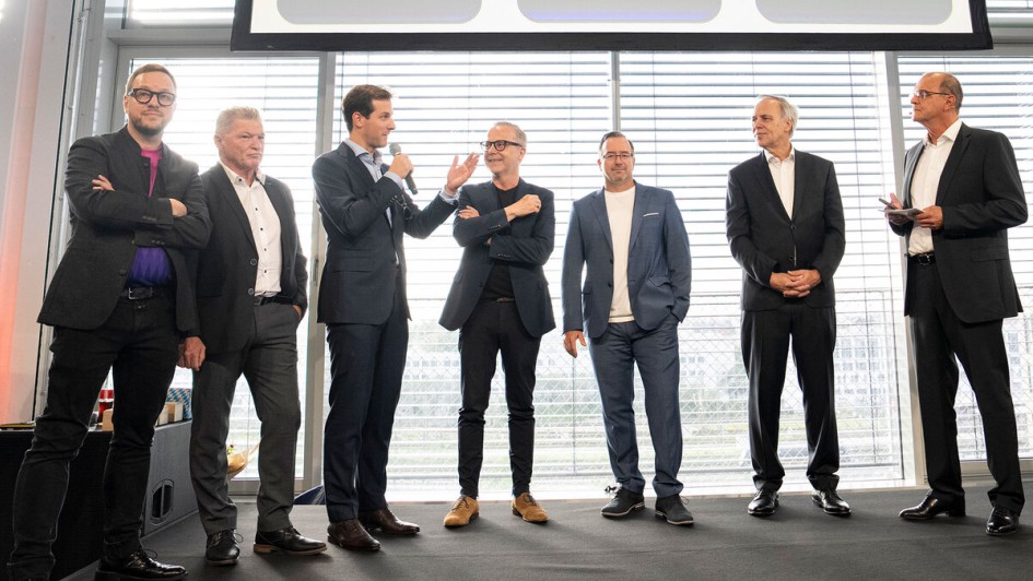 von 23: V.l.n.r.: Ralph M. Meunzel, Jolanta Sulowski, Jürgen Papadopoulos (Papadopoulos Associates), Roman Still (AVAG), Stefan N. Quary (Audi) und Werner Söcker (Wellergruppe)
