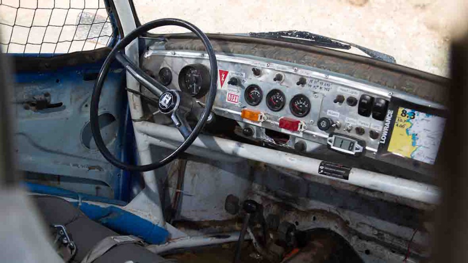 von 10: Wenn Graham unter dem Armaturenbrett einen Schalter umlegt, aktiviert er die Zündung und lässt mit einem Knopfdruck den vom Wüstensand komplett bedeckten Motor an.
