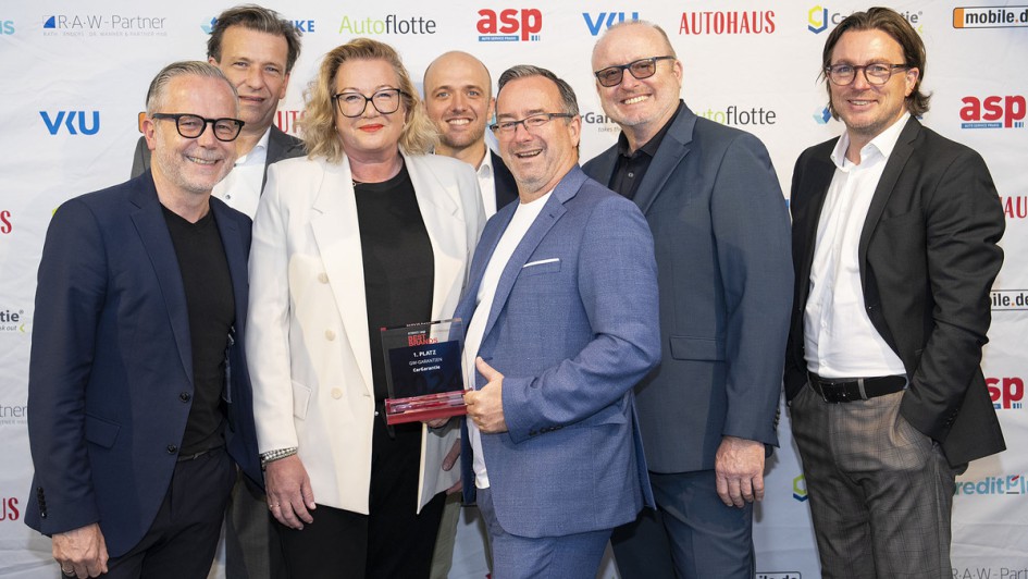 von 20: Kategorie GW-Garantien Platz 1: Car Garantie / V.l.n.r.: Claus Schlicker, Holger Siegfried, Ina Berger, Jan Toth, Sascha Schüren, Dirk Heinemann und Enno Martin