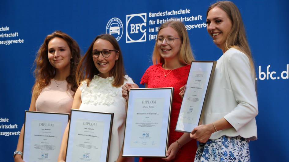 von 9: Die Bundesfachschule für Betriebswirtschaft im Kraftfahrzeuggewerbe (BFC) in Northeim hat jetzt den 57. Jahrgang verabschiedet. Er stand im Zeichen der Corona-Krise und wurde zum Ende hin hauptsächlich online unterrichtet.