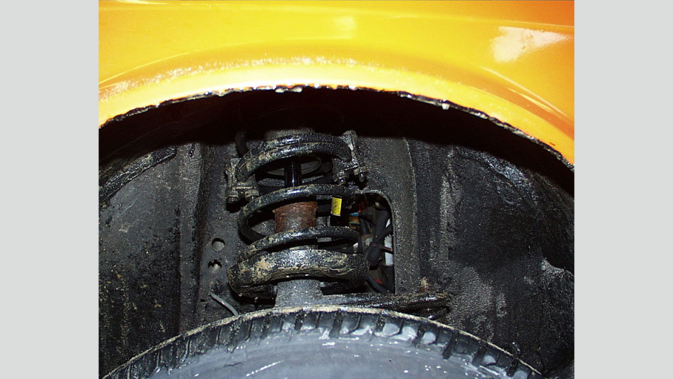 von 7: "Frankensteins" Stoßdämpferhalterung: Liegt bei einer Stoßdämpferhalterung ein Ermüdungsbruch vor, sollte das umgehend repariert werden. Dieses Bild, das Bilstein von einem Schulungsteilnehmer überlassen wurde, zeigt jedoch ein Flickwerk, das Professor Frankenstein alle Ehre gemacht hätte. Da man den eigenen Schweißkünsten wohl nicht so recht traute, wurde seitlich zur Verstärkung gleich noch eine Schraube mit "angebraten". Diese Reparatur ist in ihrer Gesamtheit höchst unfachmännisch ausgeführt, sodass spätestens nach der nächsten Hauptuntersuchung die Stilllegung fällig gewesen wäre. Zudem stellt die Ausführung ein erhebliches Sicherheitsrisiko dar. Das korrekte Vorgehen wäre nun, alle betroffenen Komponenten umgehend zu ersetzen. Dies betrifft auch den Stoßdämpfer, da man eine Beschädigung nicht ausschließen kann.