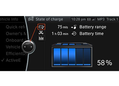 von 8: Alles im Blick: Der Fahrer wird im "ActiveE"-Menü über den Ladezustand der Batterie informiert.