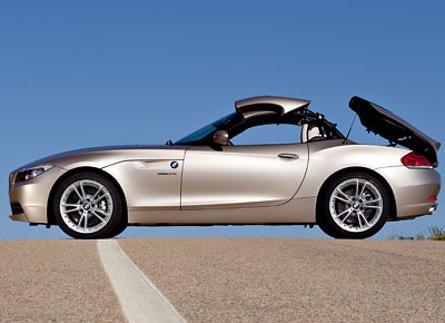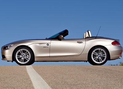 von 10: Mehrheitsfähiger wurde das Design des Z4. Die Front ist betont gepfeilt – gekrönt von einer wuchtigen Niere und den nach oben gezogenen Scheinwerfern.