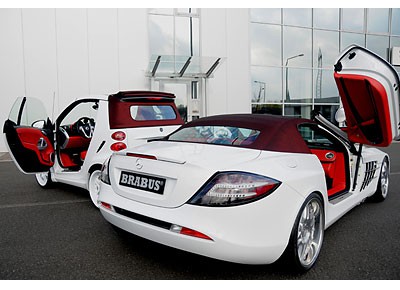 von 10: Brabus bietet ab sofort veredelte Versionen des SLR McLaren Roadster und des Smart Fortwo Cabrios als Paket zum Nettopreis von rund 587.390 Euro an.