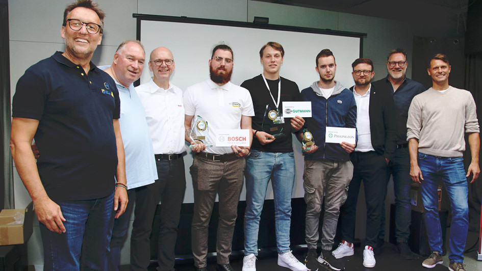 von 9: Zusammen mit den drei Siegern in der Mitte von links: Henning Kaess (ATR), Thomas Kleist (Matthies), Thomas Koch (Bosch), Julian Engelmeyer (Pilkington), Martin Berner (PV Automotive) und Thomas Buschmann (PV Automotive).