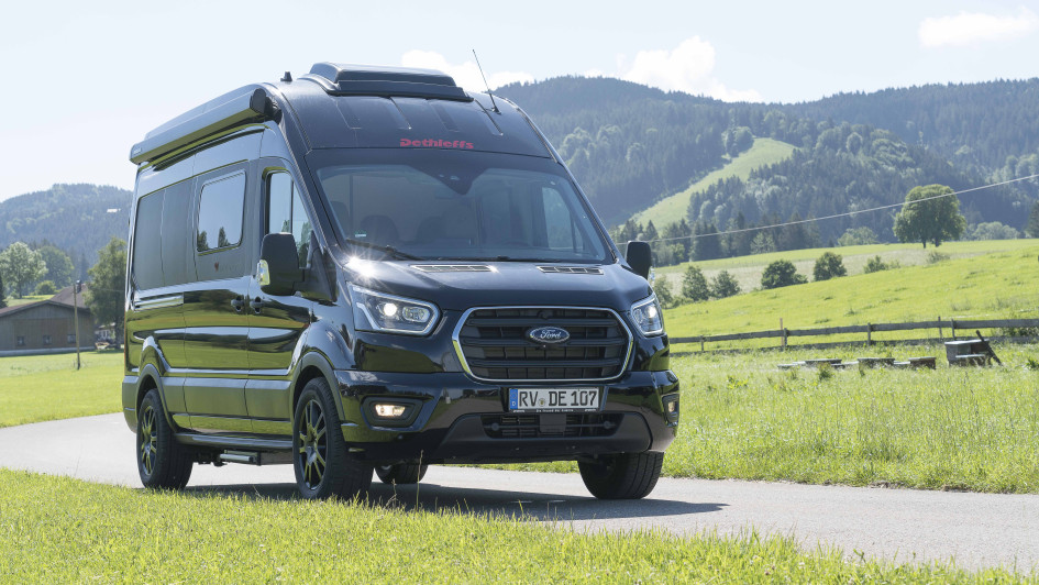 von 30: Dethleffs erweitert seine im Vorjahr eingeführte Camper-Van-Baureihe Globetrail um eine 590C-Variante mit einem Ford Transit als Basis.