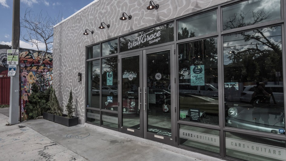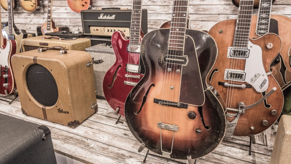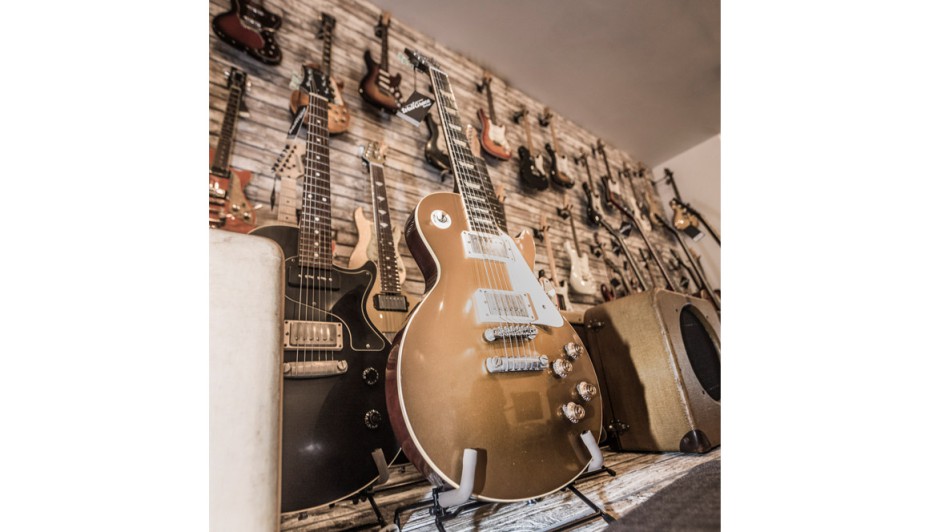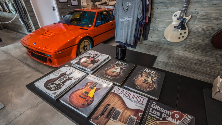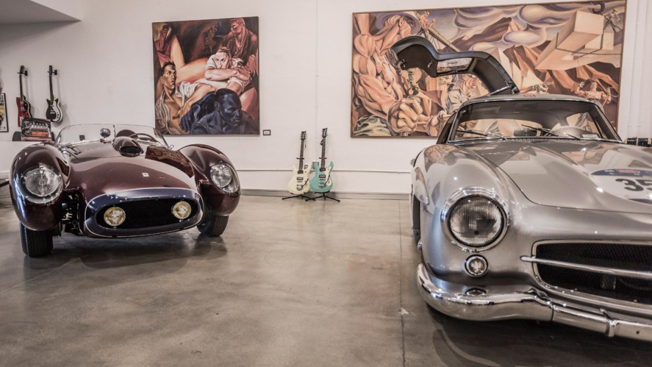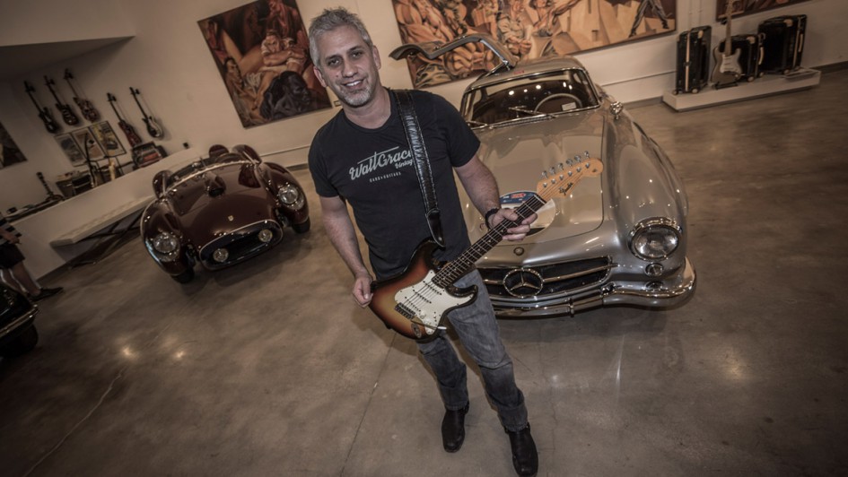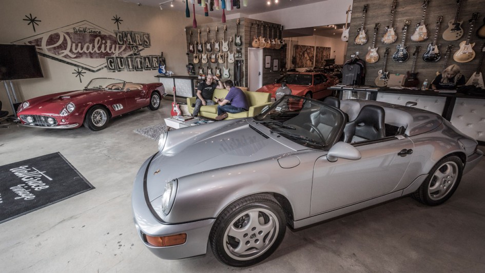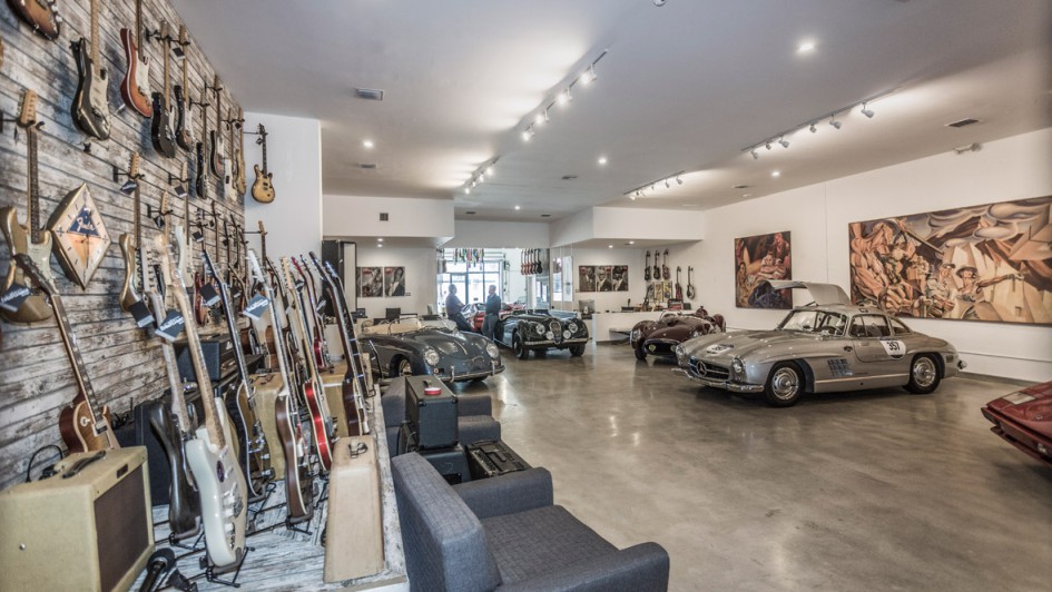 von 10: Von den Decken und an den Wänden hängen bald hundert Gitarren und auf dem blitzblanken Boden stehen ausgefallene Sportwagen jedweder Couleur.