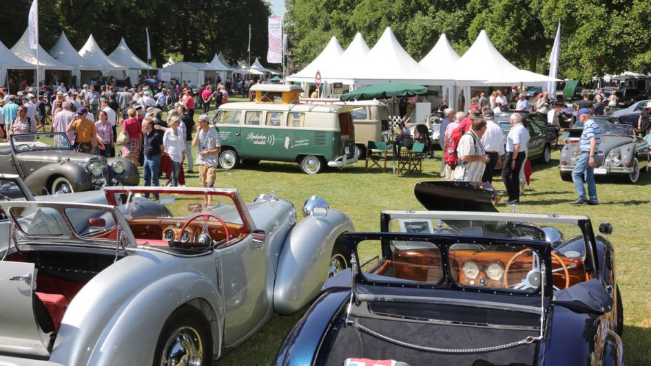 von 10: Die die verträumte Kulisse vor und in dem herrschaftlichen Wasserschloss und den prächtigen Gärten, die Retro-Themenwelten die zur Zeitreise einladen und eben die besondere Bandbreite der Klassiker fasziniert auch nur bedingt Auto-Interessierte