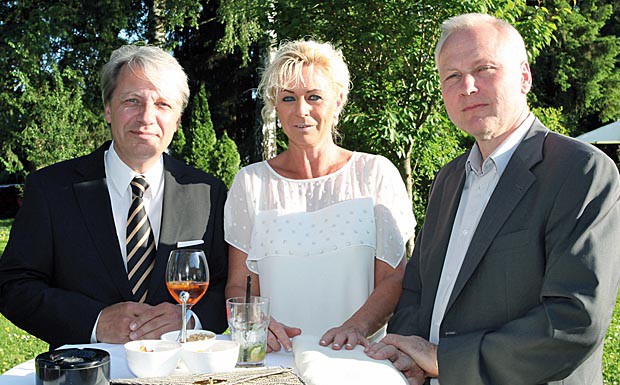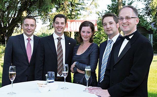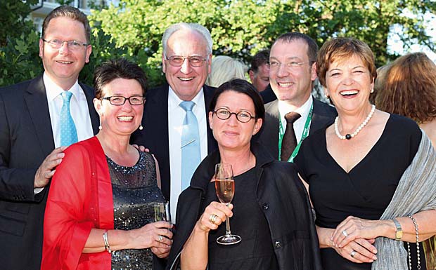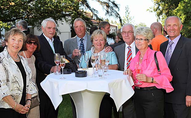 von 20: Viel Spaß beim Get together am ersten Abend: Ines Bäumer-Tönnemann, Axel Neumann, Citroen, Werner Tönnemann, S&B Consulting, Tilo Staudacher mit Lydia Martin, Peter Göhringer, GGG Anwälte, und Barbara Lux-Krönig, Kanzlei Rath, Anders, Dr. Wanner & Partner. Peter Göhringer spendierte den Aperitif.