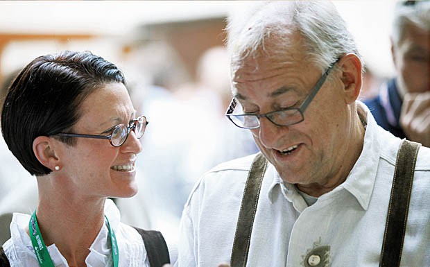 von 20: Passend zur Region in Tracht: Christine Wieser, MW-Classics, und Albert Schoenenberger, M.B. Sports-Cars, Schweiz.
