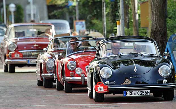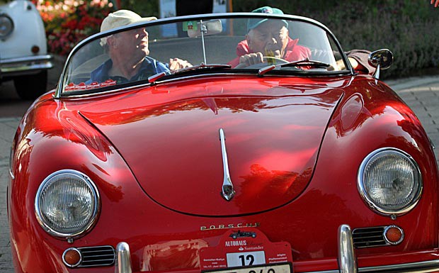 von 19: Ein eingespieltes Team mit viel Classic-Erfahrung sind Helmuth H. Lederer, Verlag A&W sowie Prof. Hannes Brachat, Herausgeber AUTOHAUS, im Porsche Speedster von 1955.