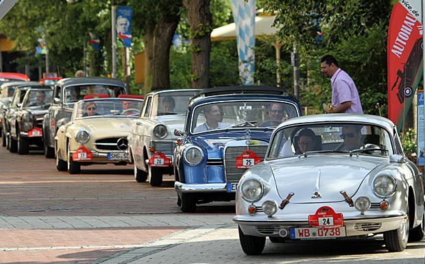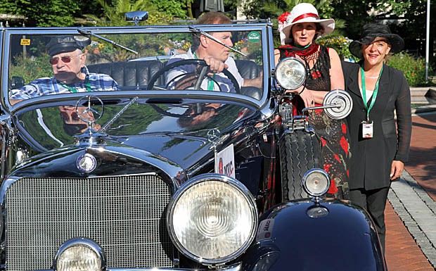 von 19: Familie Dressel vom Berliner Mercedes Benz Autohaus Dressel ist mit gleich drei Fahrzeugen zur Rallye angereist, und war auch schon mehrmals mit dabei. Gerd und Rudolf Dressel im Mercedes Benz von 1936 im Team Nr. 4 und Silva Dressel (r.) mit Co-Pilotin Veronika Leluschko gehören daher schon zu den Classic Rallye-Profis.