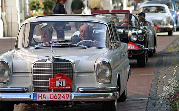 von 19: Rita und Hans-Joachim Wabbel, Auto-Wabbel, waren auch schon mehrmals mit auf der Classic-Rallye dabei. Hier am Steuer ihres Mercedes-Benz 220 SE von 1960.