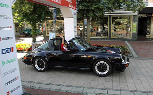 von 19: Brausen im Porsche 911 Carrera Targa (1986) schon mal los: Mit-Gastgeber Thomas Hanswillemenke, Santander Consumer Bank, mit seiner Frau Nejla.
