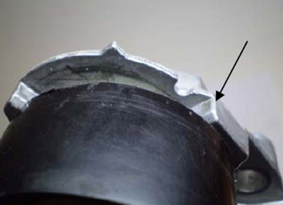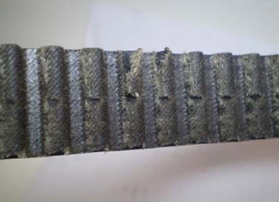 von 5: Schadensbildnach dem Zahnriemenwechsel bei einigen Renault-Modellen: Der Riemen ist auf dem Rücken erhitzt und die Umlenkrolle nimmt thermischen Schaden.