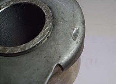 von 5: Unter Last hat sich die Rolle durch das nicht ordnungsgemäße Einsetzen der Drehachse der Spannrolle und/oder das unzureichende Anziehen der Mutter verdreht und der Laufmantel wurde durch eine verbogene Halteplatte innen blockiert.