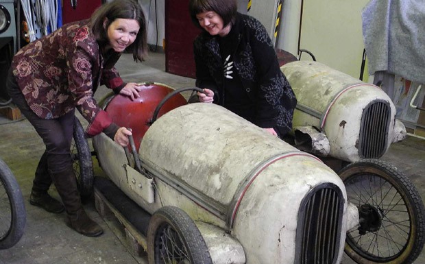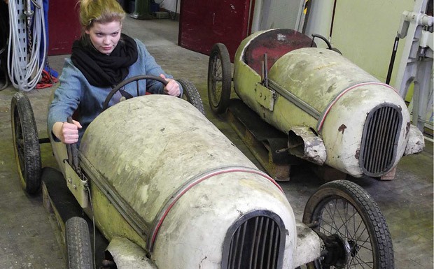 von 5: Die so genannten "Kinderennwagen" fuhren auf einem Ovalkurs und waren den legendären "Silberpfeilen" nachempfunden. In den 1970ern wurden sie ausgemustert und gerieten in Vergessenheit.