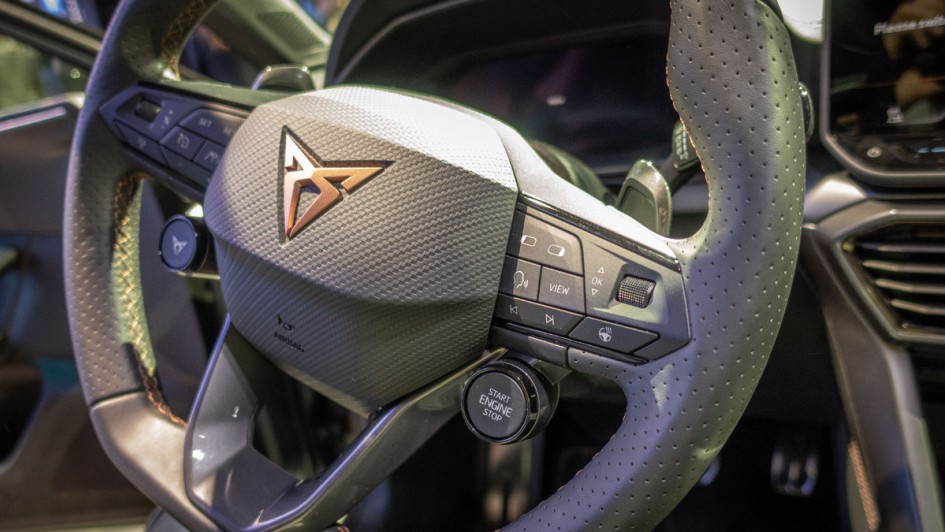 von 13: Am Lenkrad hat sich nichts verändert. Die VZ-Modelle (die ab 265 PS) bekommen im Cupra-Mode (aktivierbar über die runde Taste im Lenkrad) eine Schaltblitz-Anzeige.