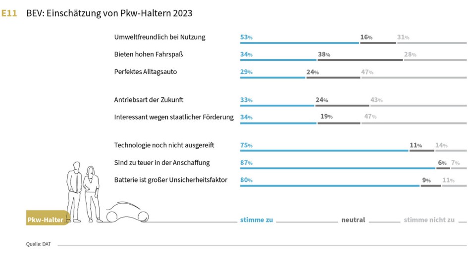 von 17: E-Autos sind zu teuer in der Anschaffung. Größter Unsicherheitsfaktor dabei ist die Batterie, außerdem sei die Technologie noch nicht ausgereift.