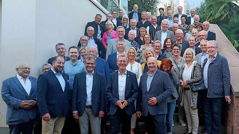 von 9: Vorabendveranstaltung des Landesverbandes Nordrhein-Westfalen, vorne von links: Hauptgeschäftsführer des LV NRW, Marcus Büttner, der kommende ZDK-HGF Kurt Scheel, Landesverbandspräsident Frank Mund und Bundesinnungsmeister Detlef Peter Grün.