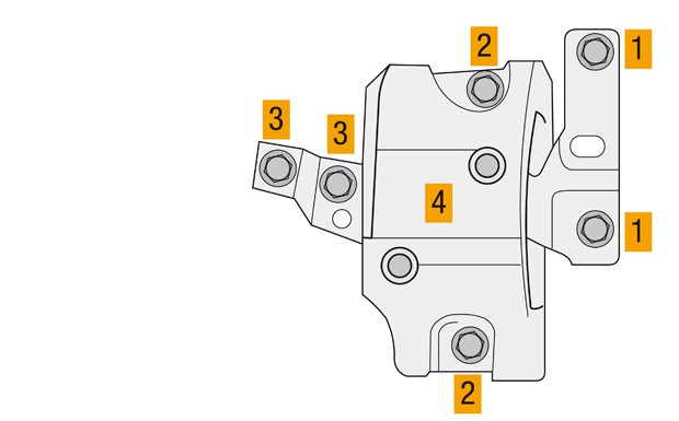 von 10: Erst jetzt die innen liegenden (1) Schrauben des Motorlagers und des außen liegenden Halters abschrauben. (3) Dann die weiteren mittig liegenden Schrauben entfernen. (2) Das Motorlager entnehmen. (4) Jetzt den Motorhalter vom Motorblock mit den 3 Halteschrauben abschrauben. Jetzt den Schwingungsdämpfer der Kurbelwelle abschrauben. Den mittigen und unteren Zahnriemenschutz ausbauen. Die Deckung der Markierungen an der Getriebeglocke erneut prüfen (Abb. 1). Erst dann die Mutter der Spannrolle etwas lösen (3).