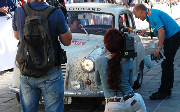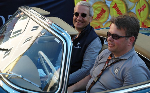 von 15: War wohl doch nicht so schlimm: Daimler Chefarchivar Jürgen Wittmann (l.) und Mercedes-Benz-Classic Pressechef Malte Dringenberg lachen.