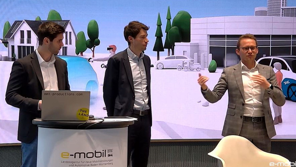 von 7: Expertenrunde mit Moderator Tim Siegel (e-mobil BW), Katja Gicklhorn, (e-mobil BW), Michael Ziegler (Verband des Kraftfahrzeuggewerbes Baden-Württemberg) und Roman Zitzelsberger (IG Metall Baden-Württemberg).