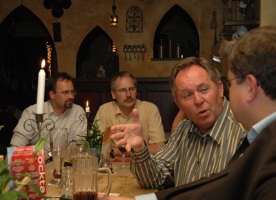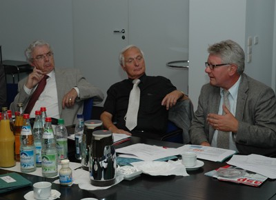 von 11: Das Treffen bot reichlich Raum für Diskussionen: Im Bild die Esslinger Dozenten Peter Schmid, Hans-Joachim Sachse und Gerhard Walliser, der zudem für die Steinbeis-Stiftung für Wirtschaftsförderung tätig ist (von rechts).