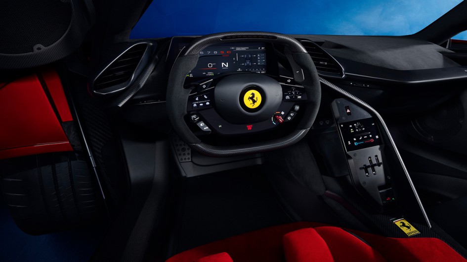 von 11: Die gut 4,80 Meter lange Flügeltür-Flunder mit bullig wirkender Front kombiniert einen Dreiliter-V6-Benziner hier mit drei von Ferrari selbst produzierten Elektromotoren.